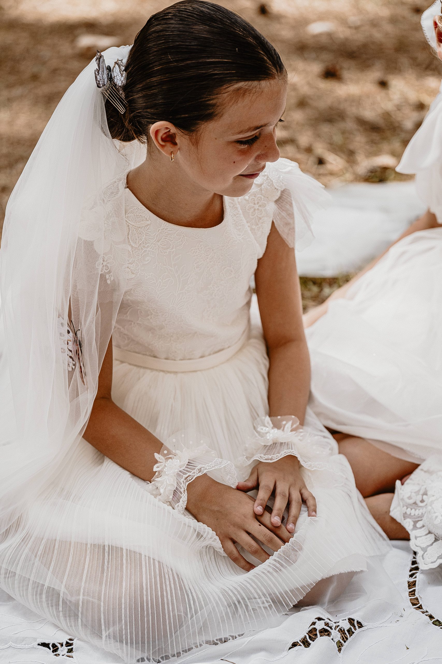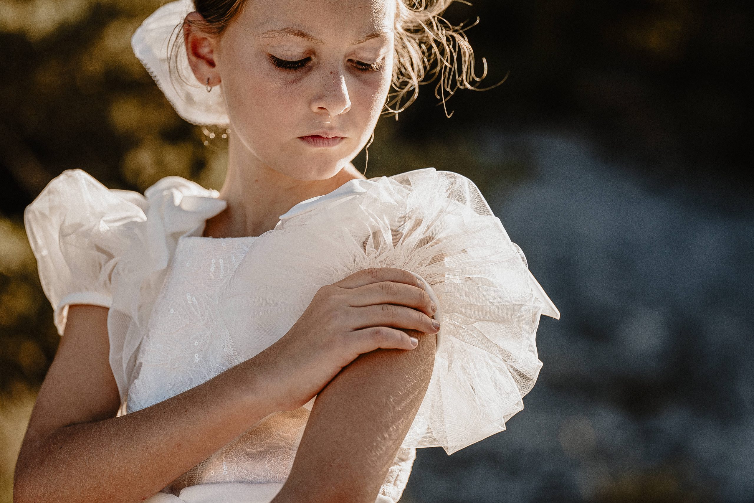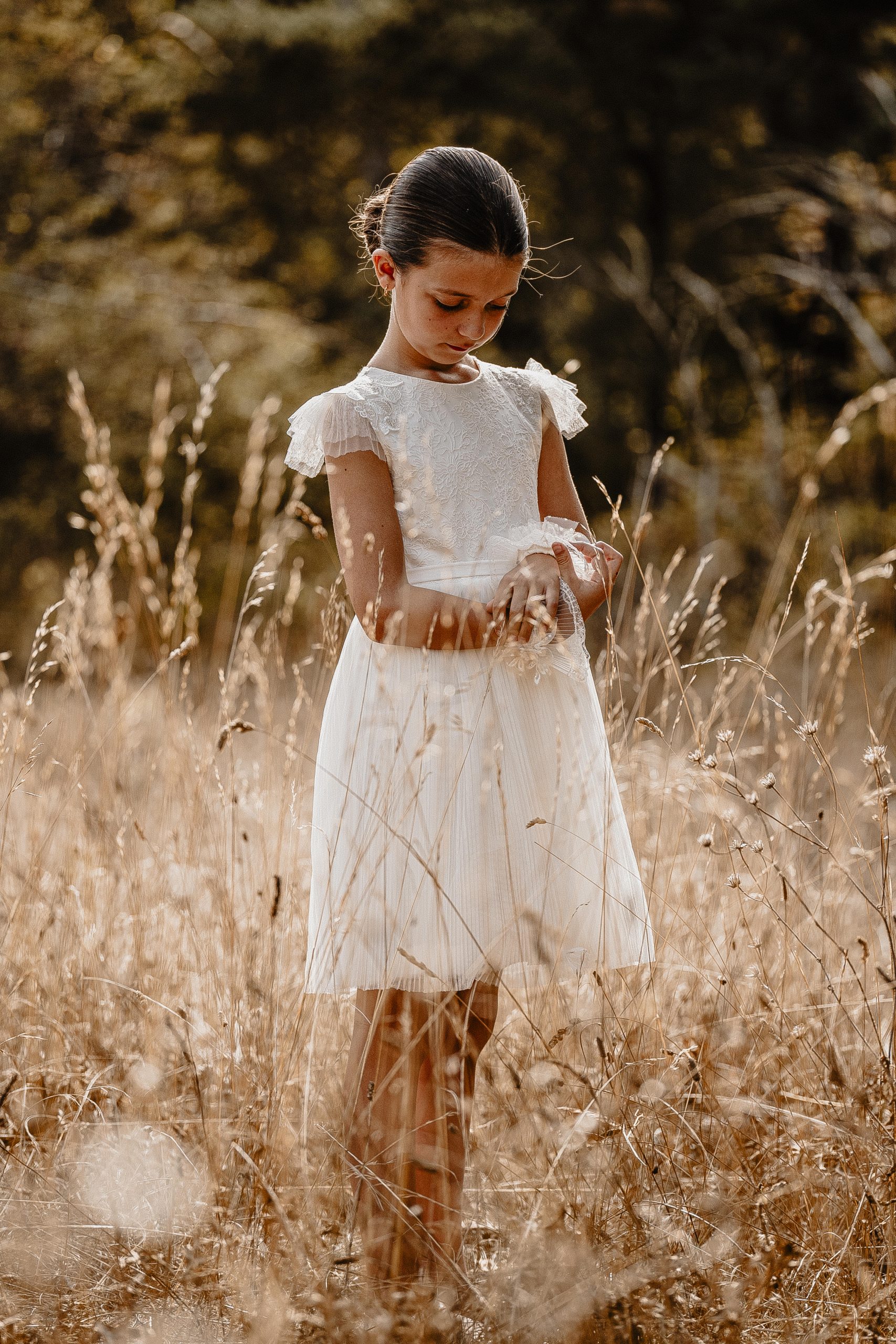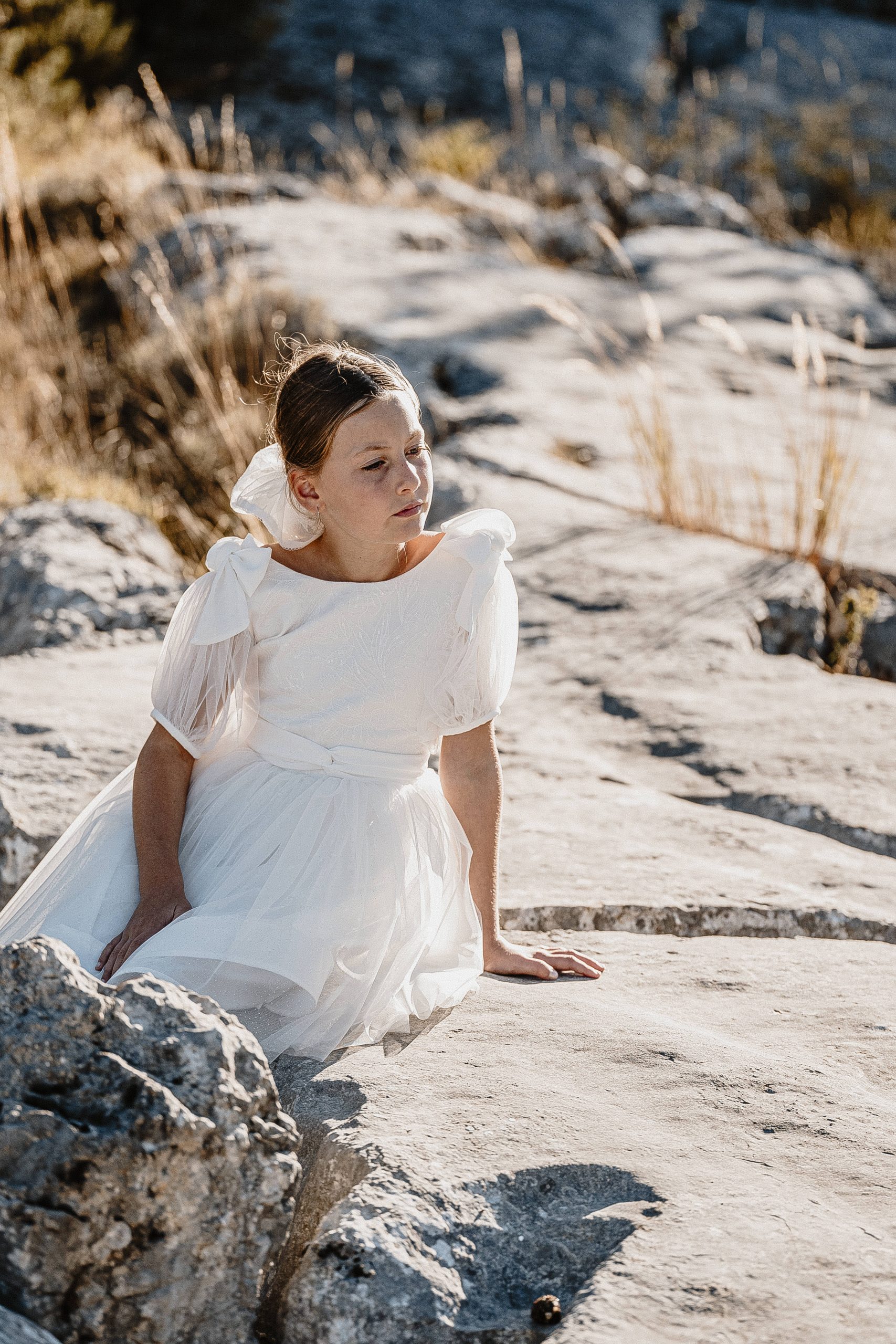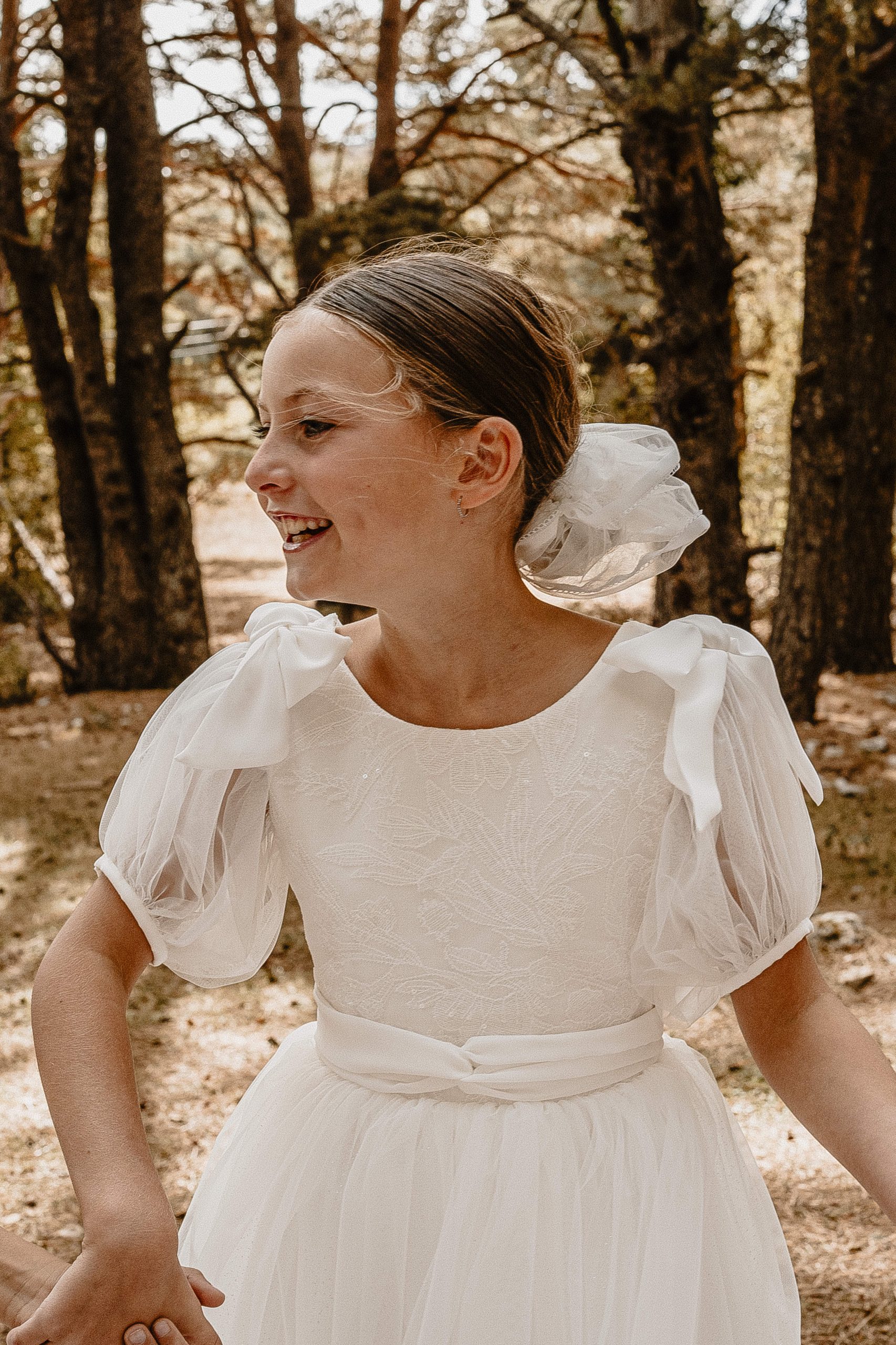 Magnifique robe romantique avec ses manches bouffantes en tulle et ses petits détails aux poignets.