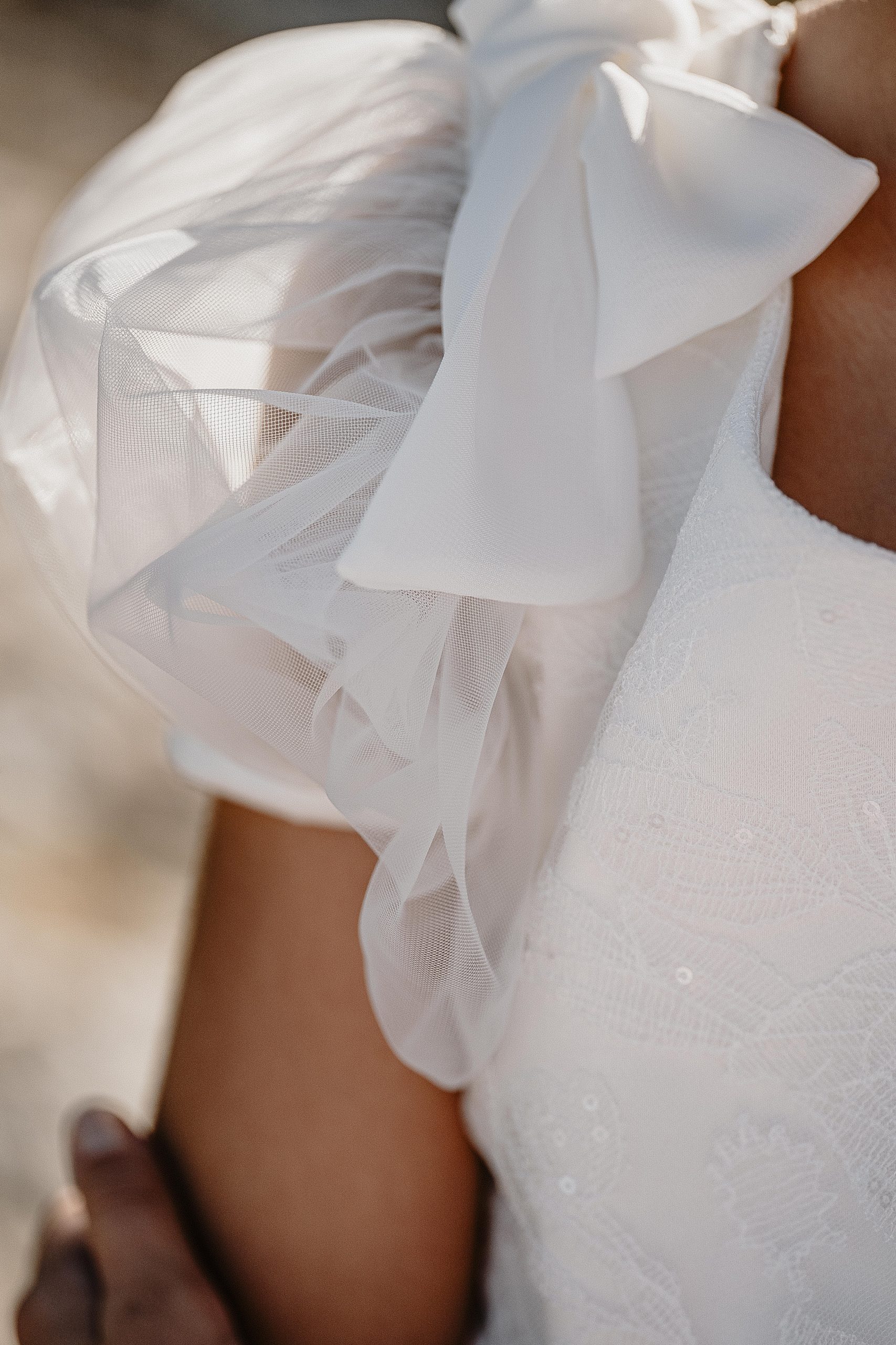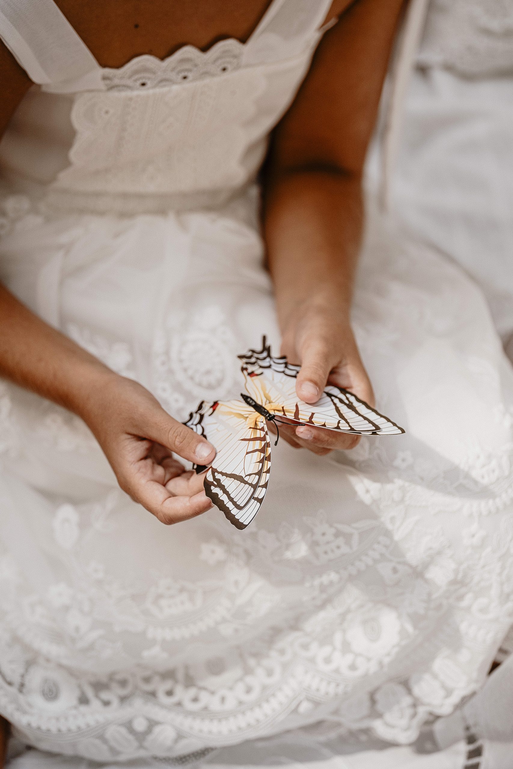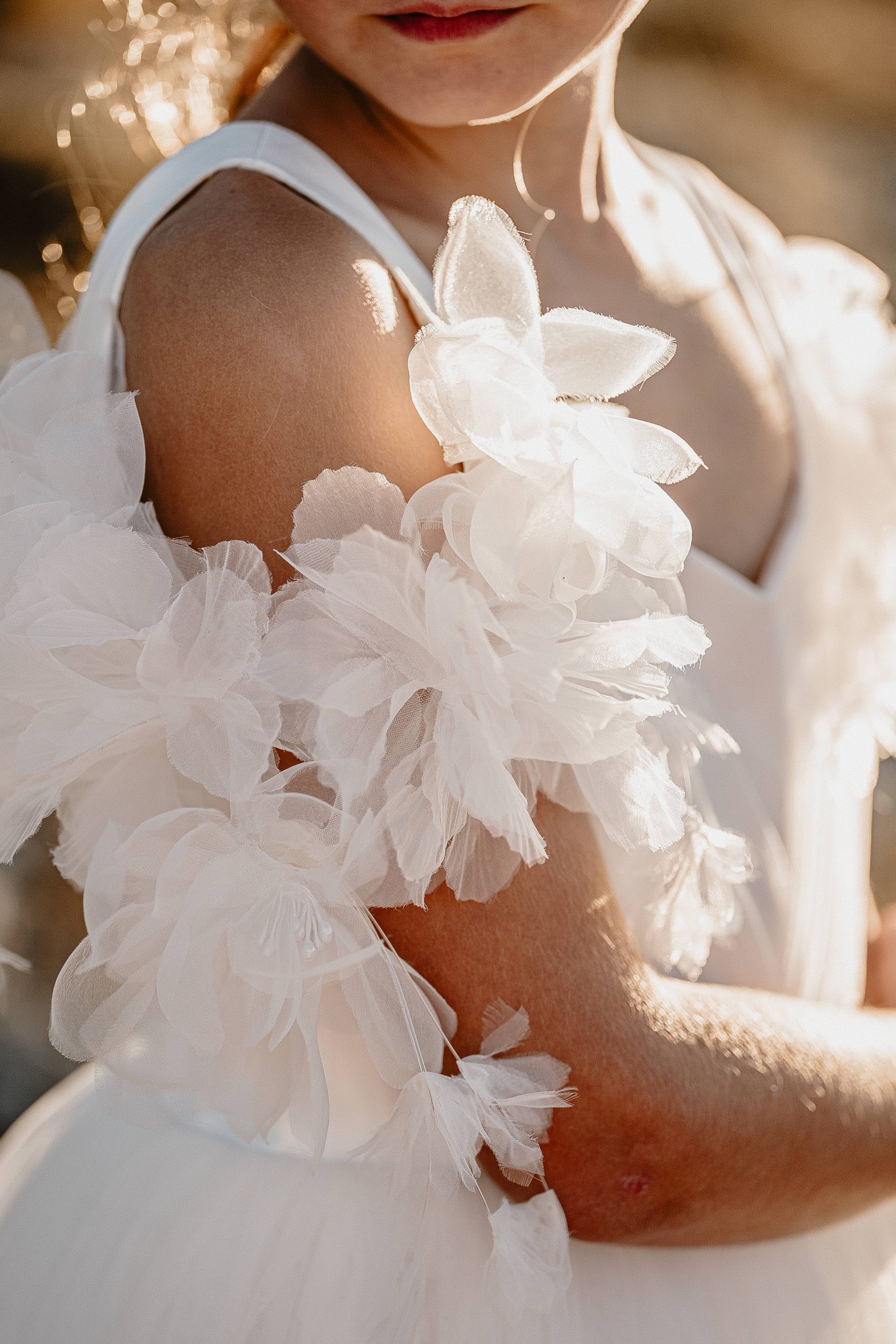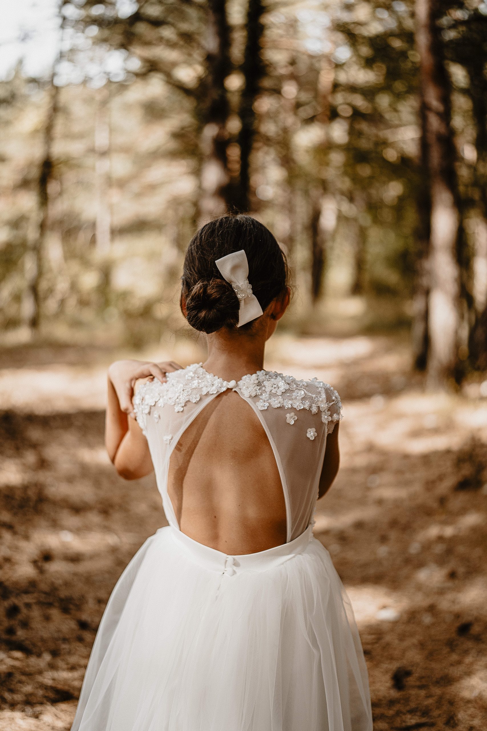 De petits papillons se sont posés sur les gros nœuds en tulle des épaules, apportant un coté féerique au modèle.