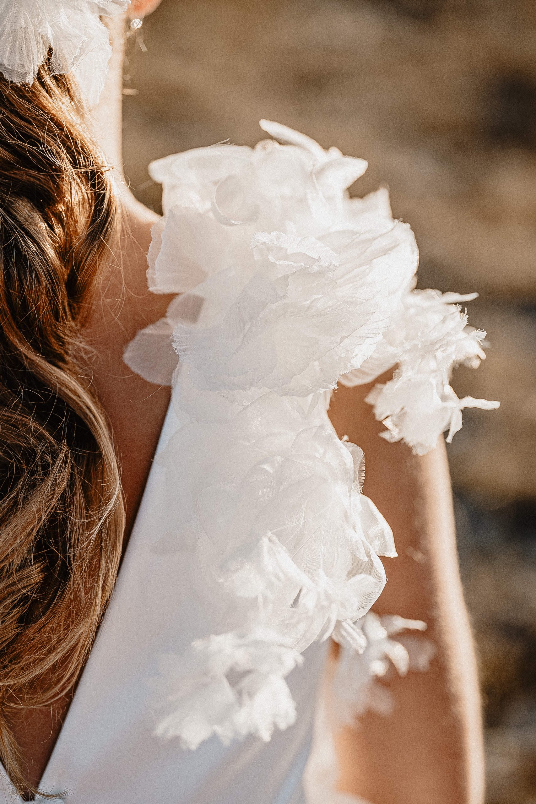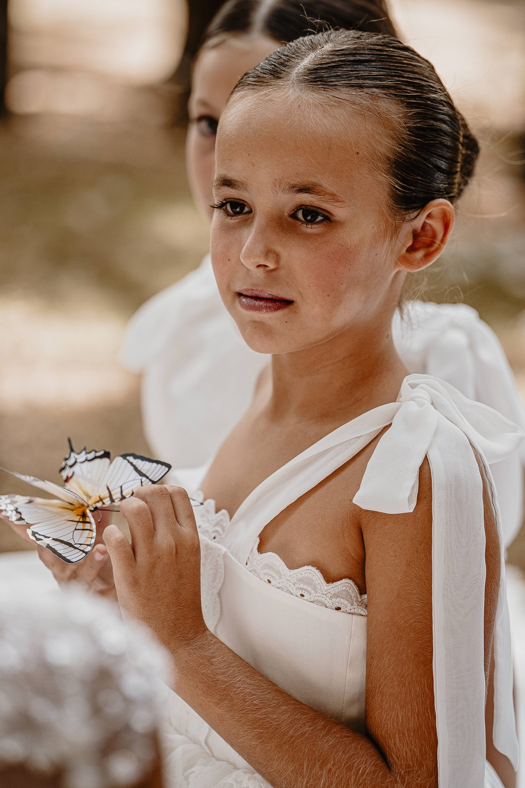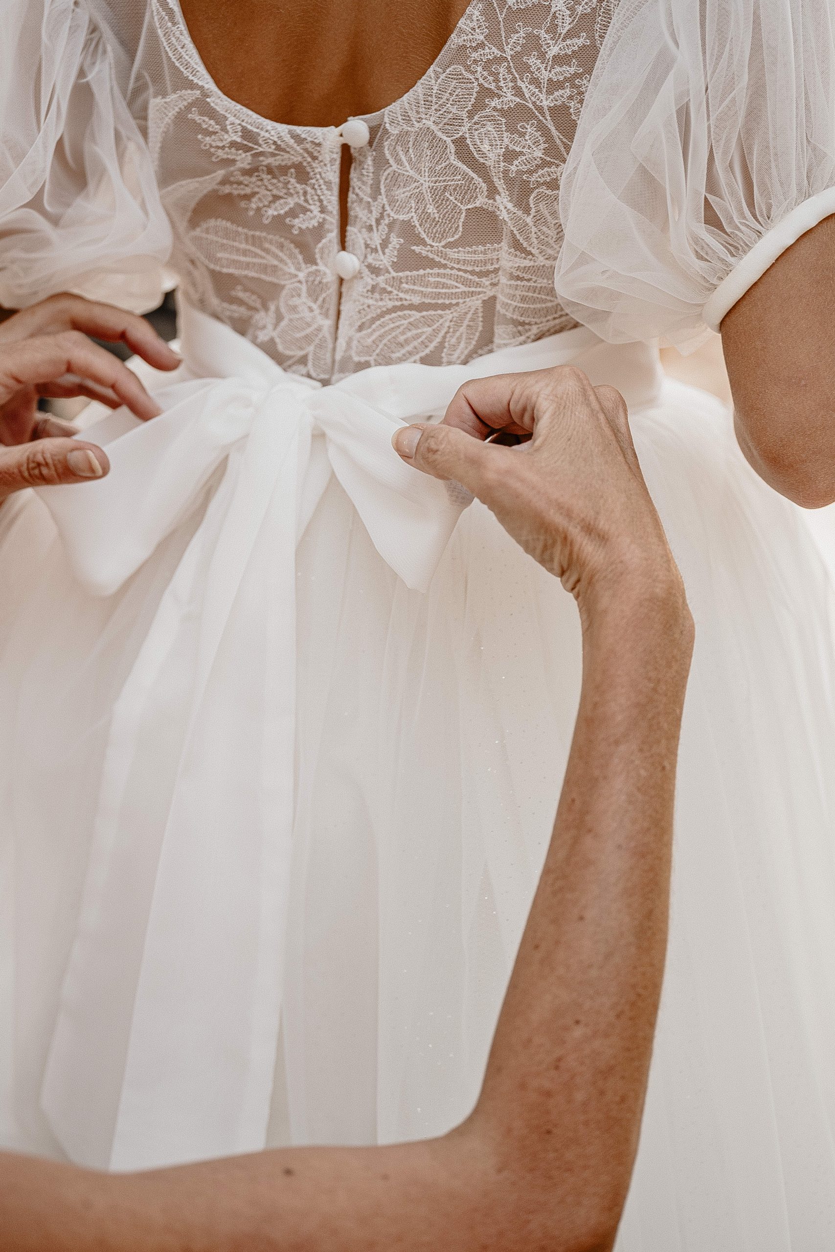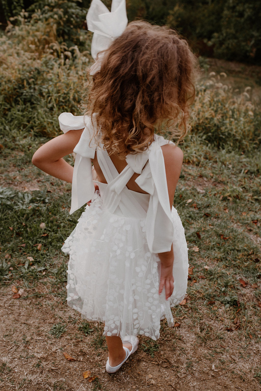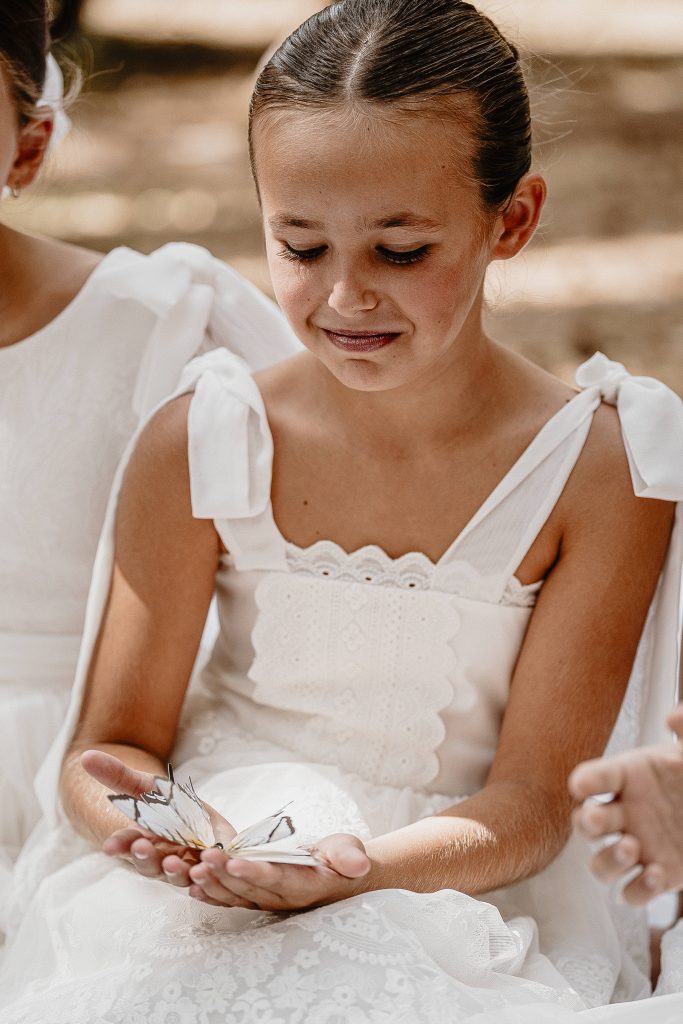 De petits papillons se sont posés sur les gros nœuds en tulle des épaules, apportant un coté féerique au modèle.