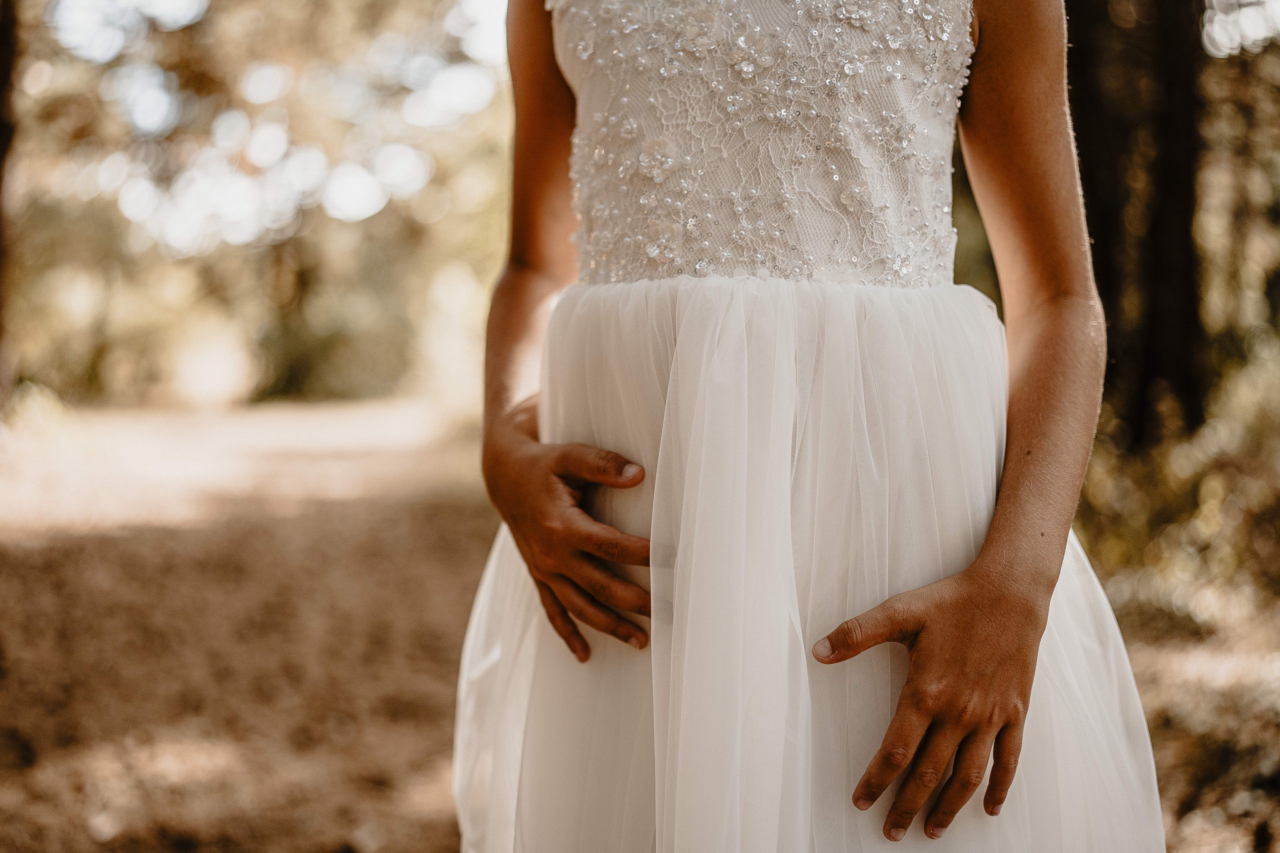 Les manches dans ce même tulle peuvent être courtes ou longues. Nous pouvons les doubler, un ajustement du prix vous sera demandé.(15€)