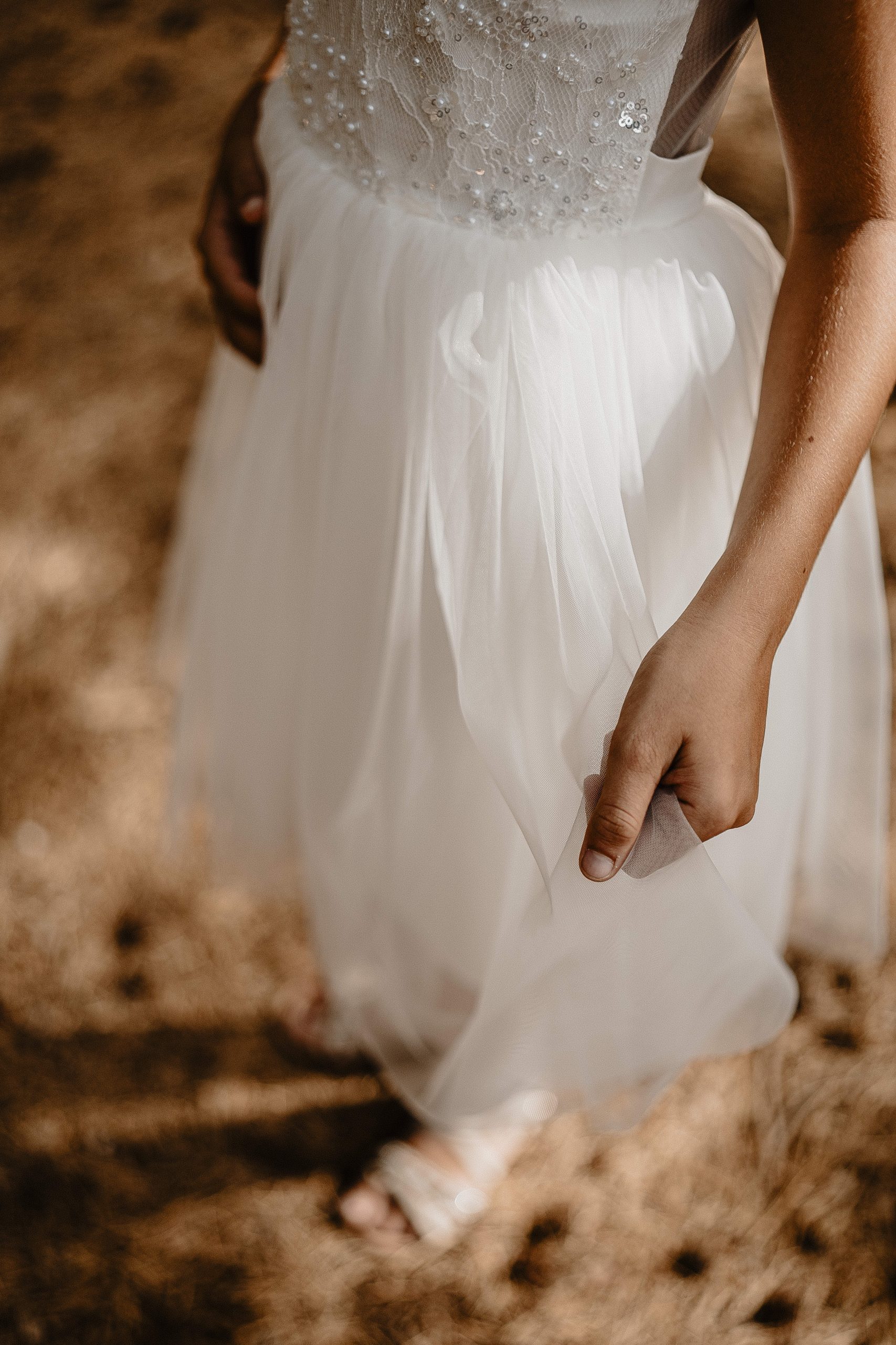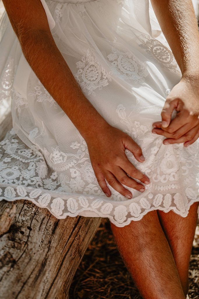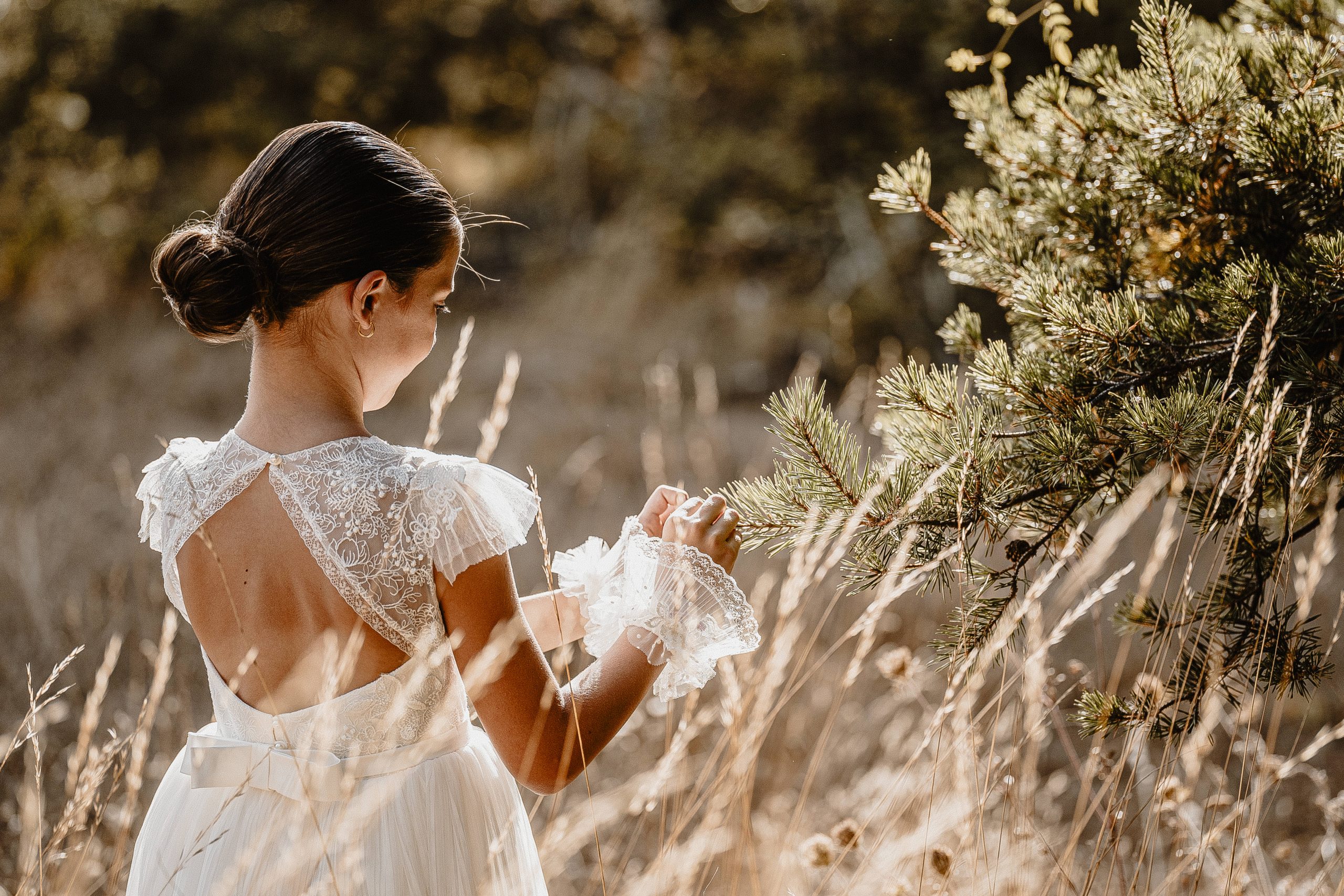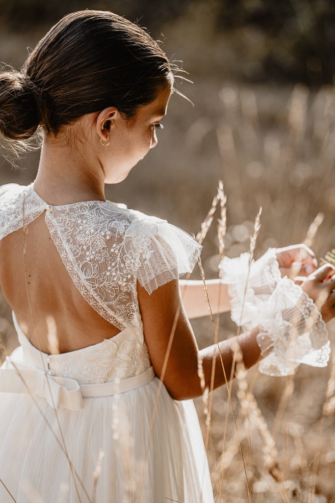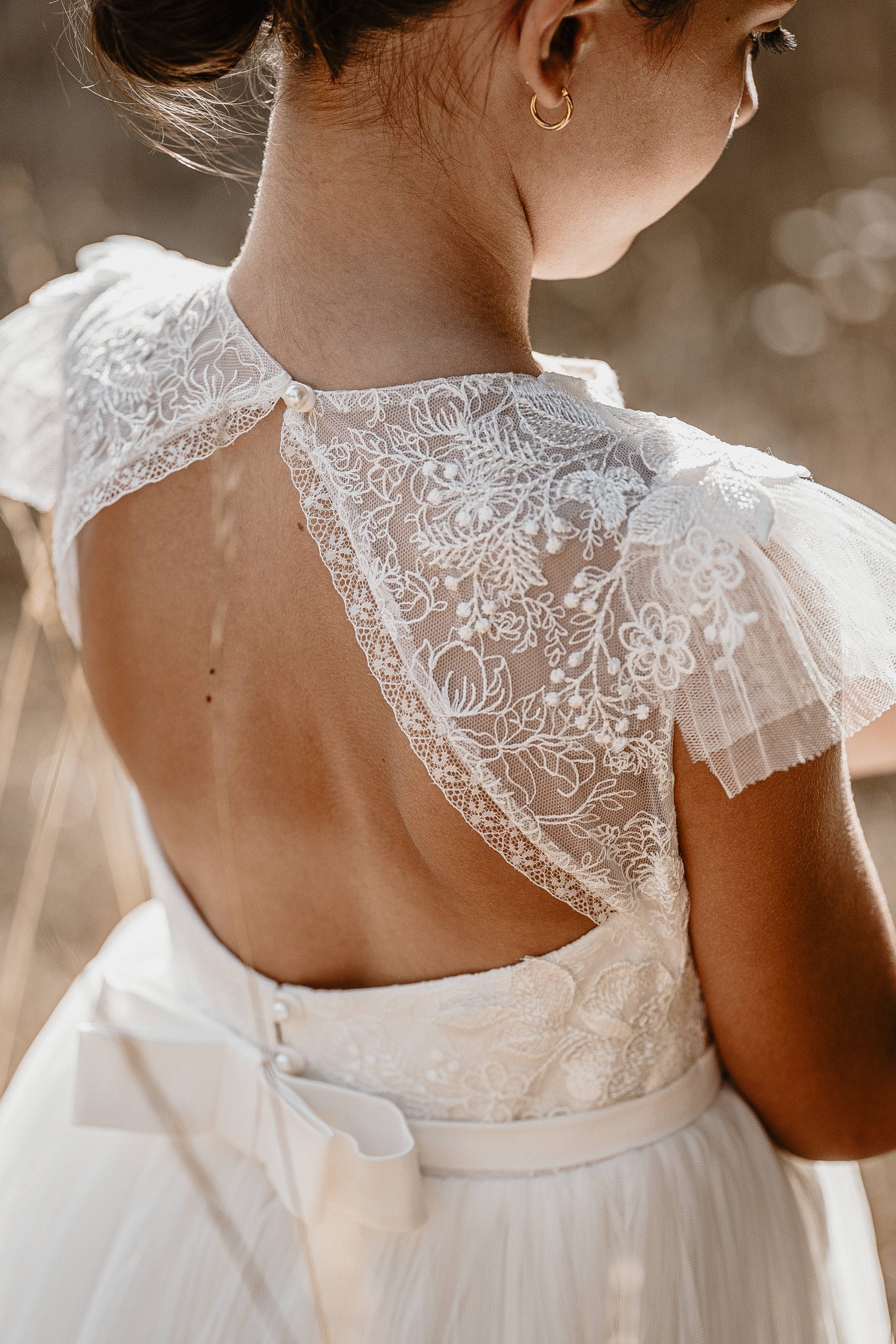 La robe Maya est une robe bohème avec son tulle brodé dans le bas, et son dos ouvert au centre avec cette même dentelle .
