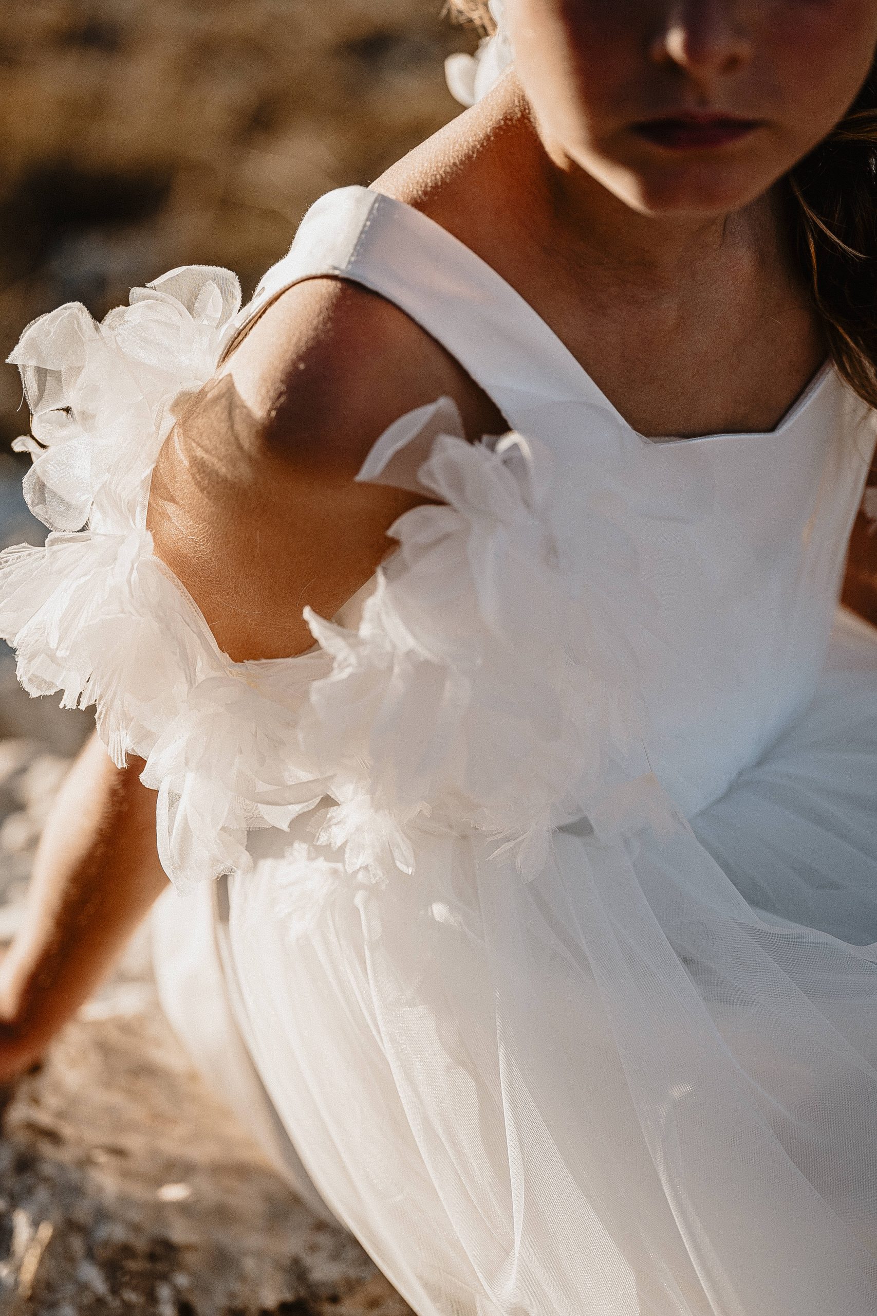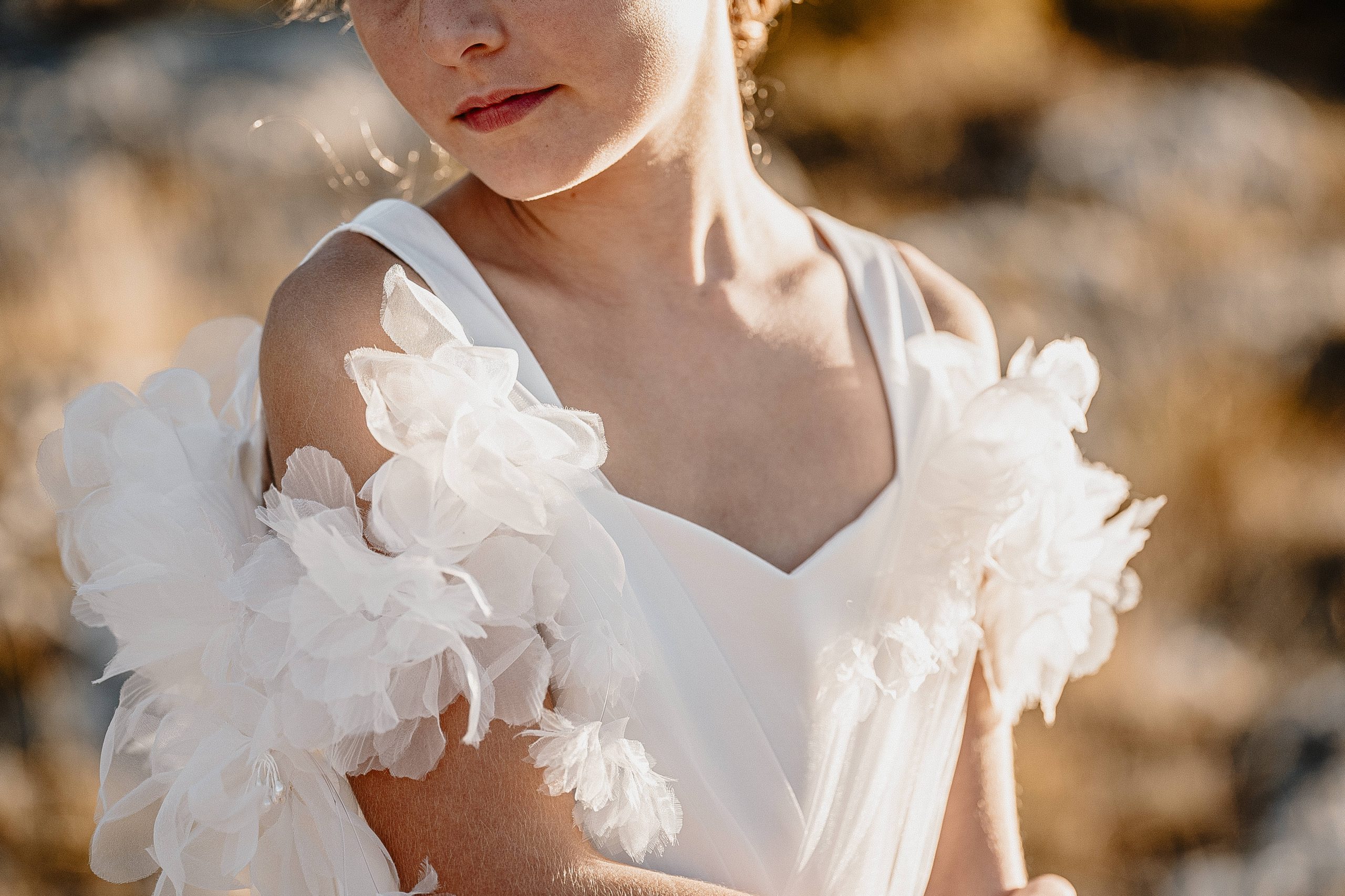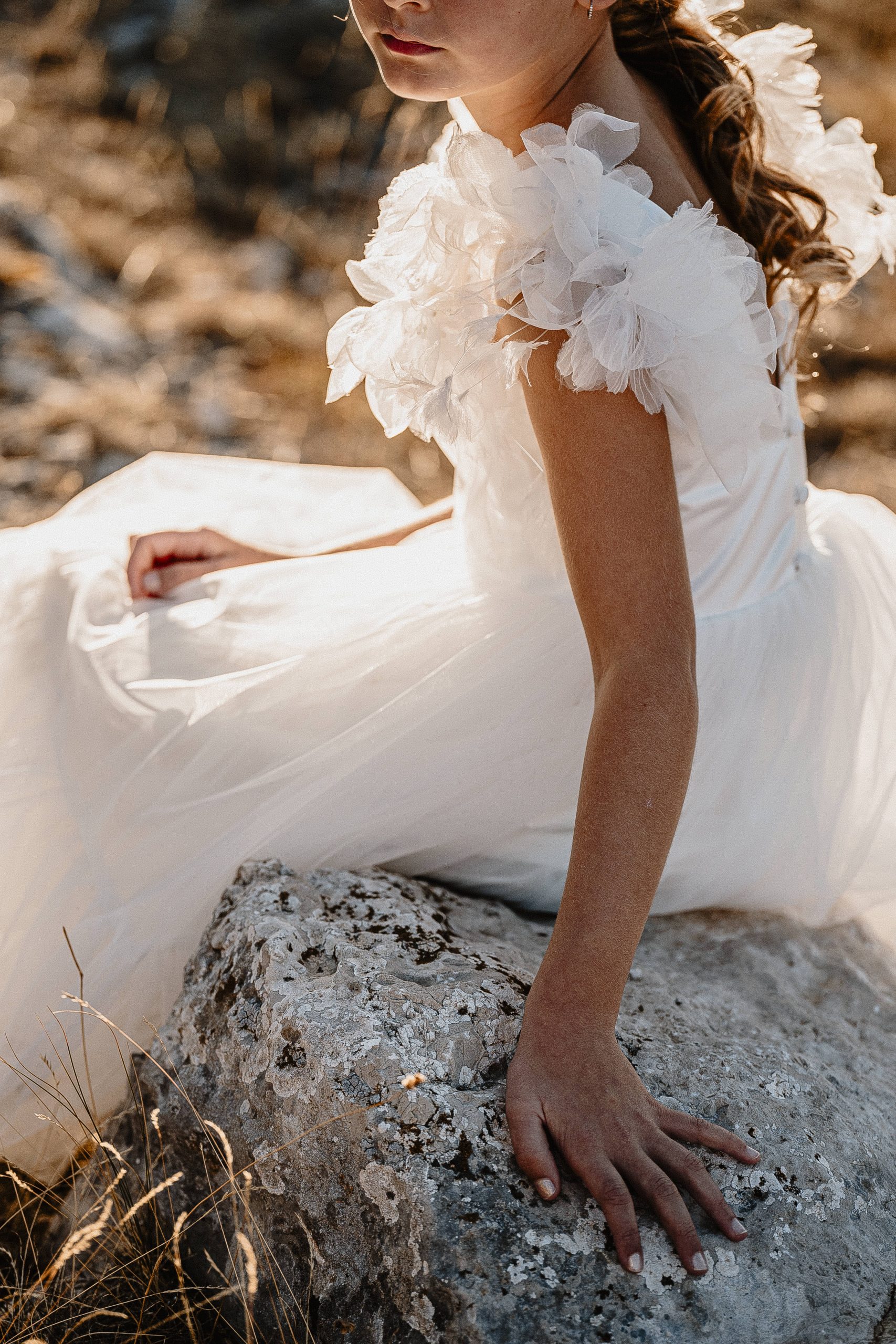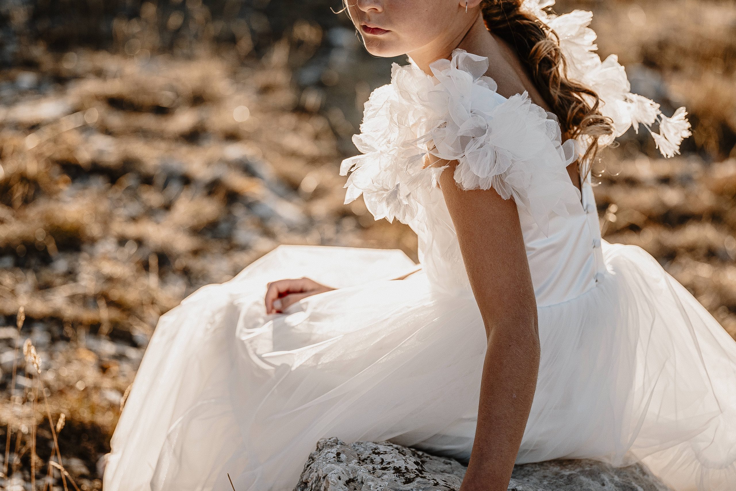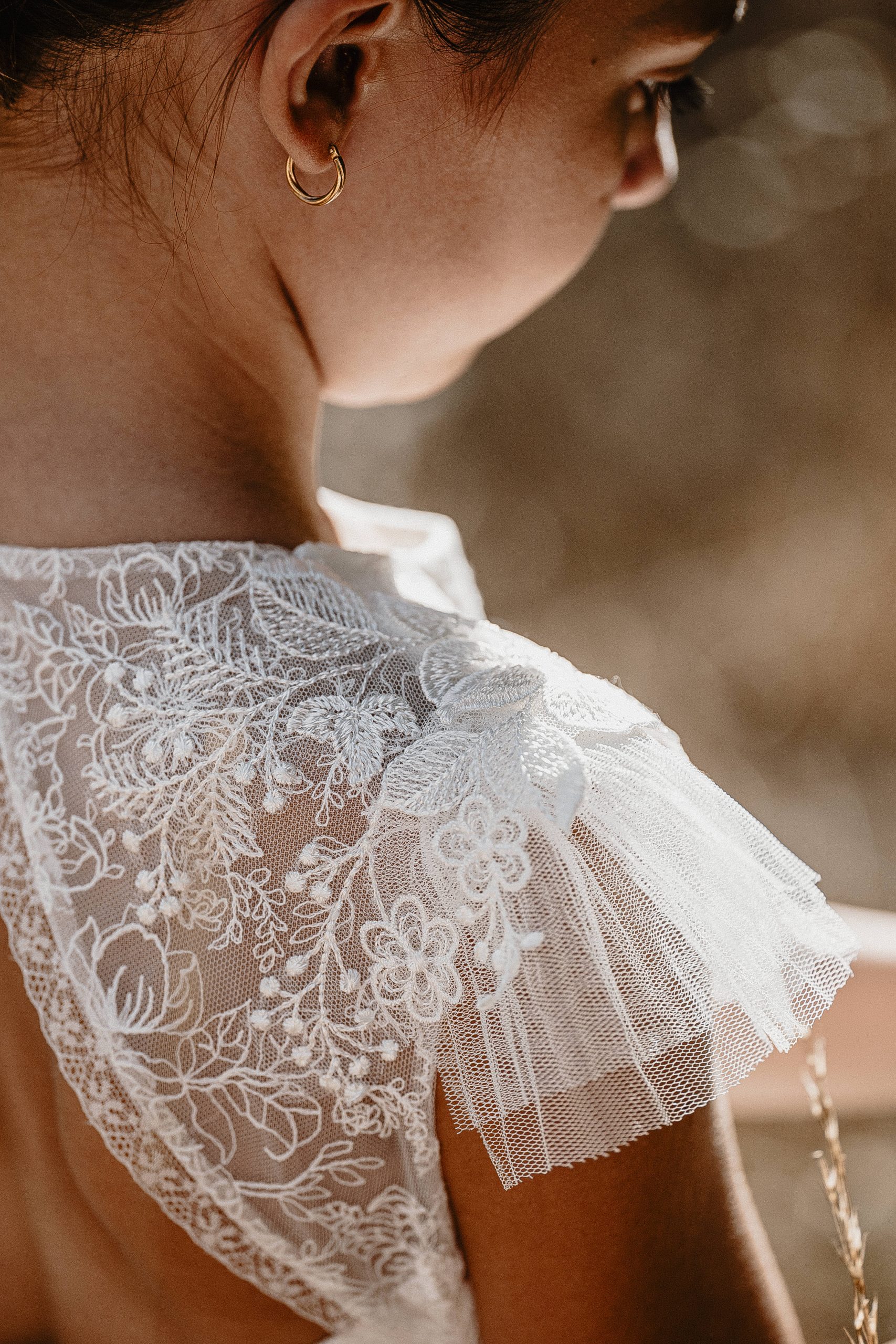 Cette création au style bohème est réalisée dans un tulle brodé avec un buste travaillé et des bretelles à nouer en crêpe georgette sur les épaules. Une création parfaite pour les amoureuses du boho. Une robe agréable à porter, légère avec un style que la marque affectionne depuis plus de 10 ans!