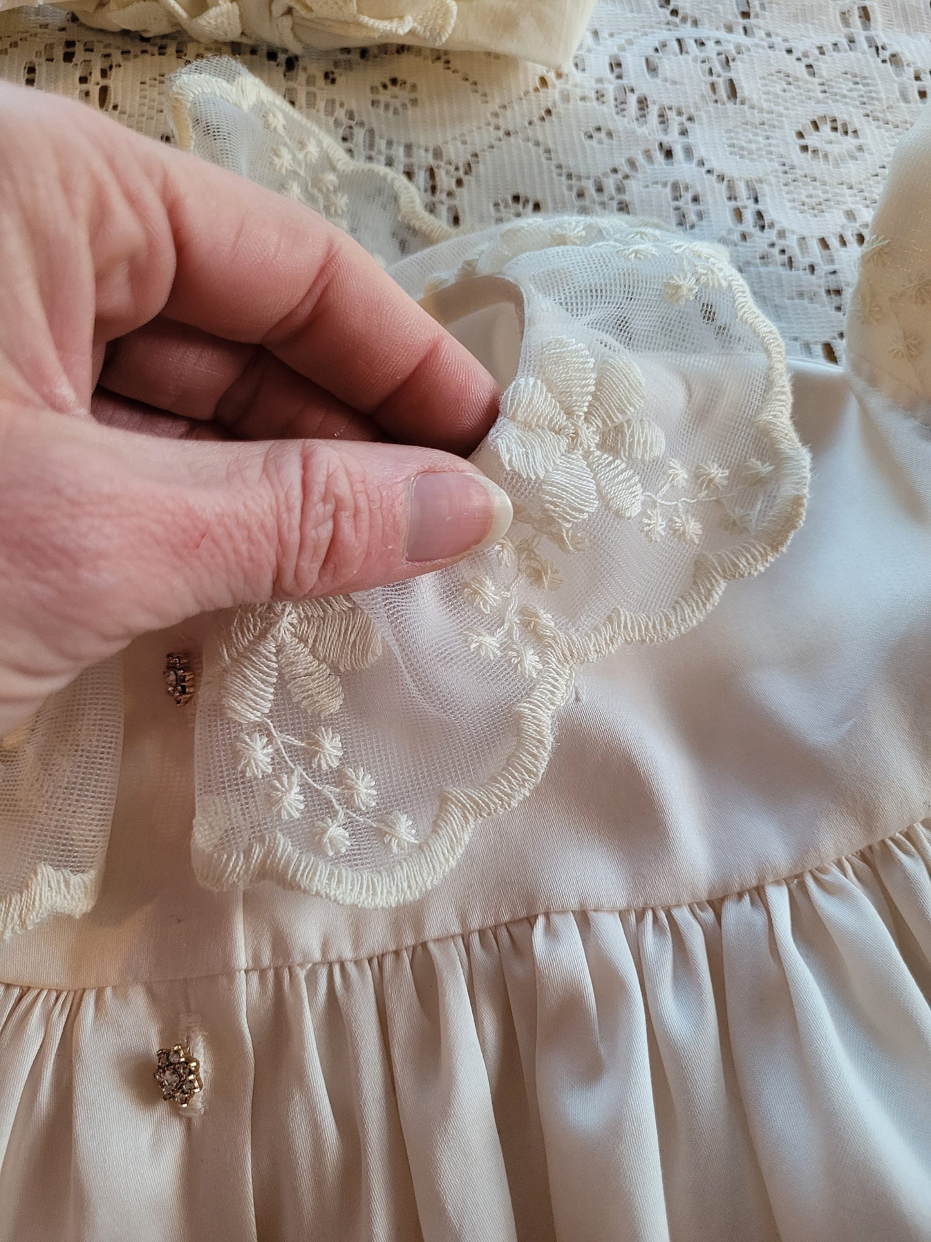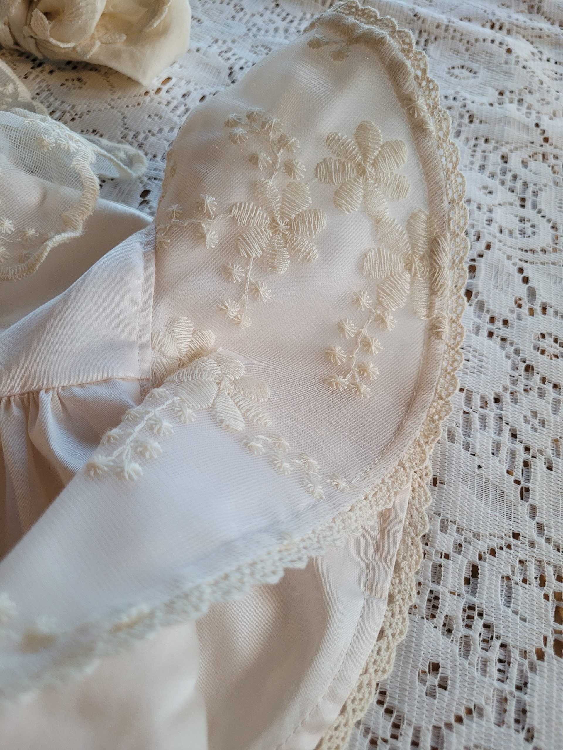 La blouse St tropez est de retour en mode cérémonie dans ce satin de coton fin et élégant de couleur écru. Rehaussée de manches volontées en tulle brodé et d’un col pierrot assorti.