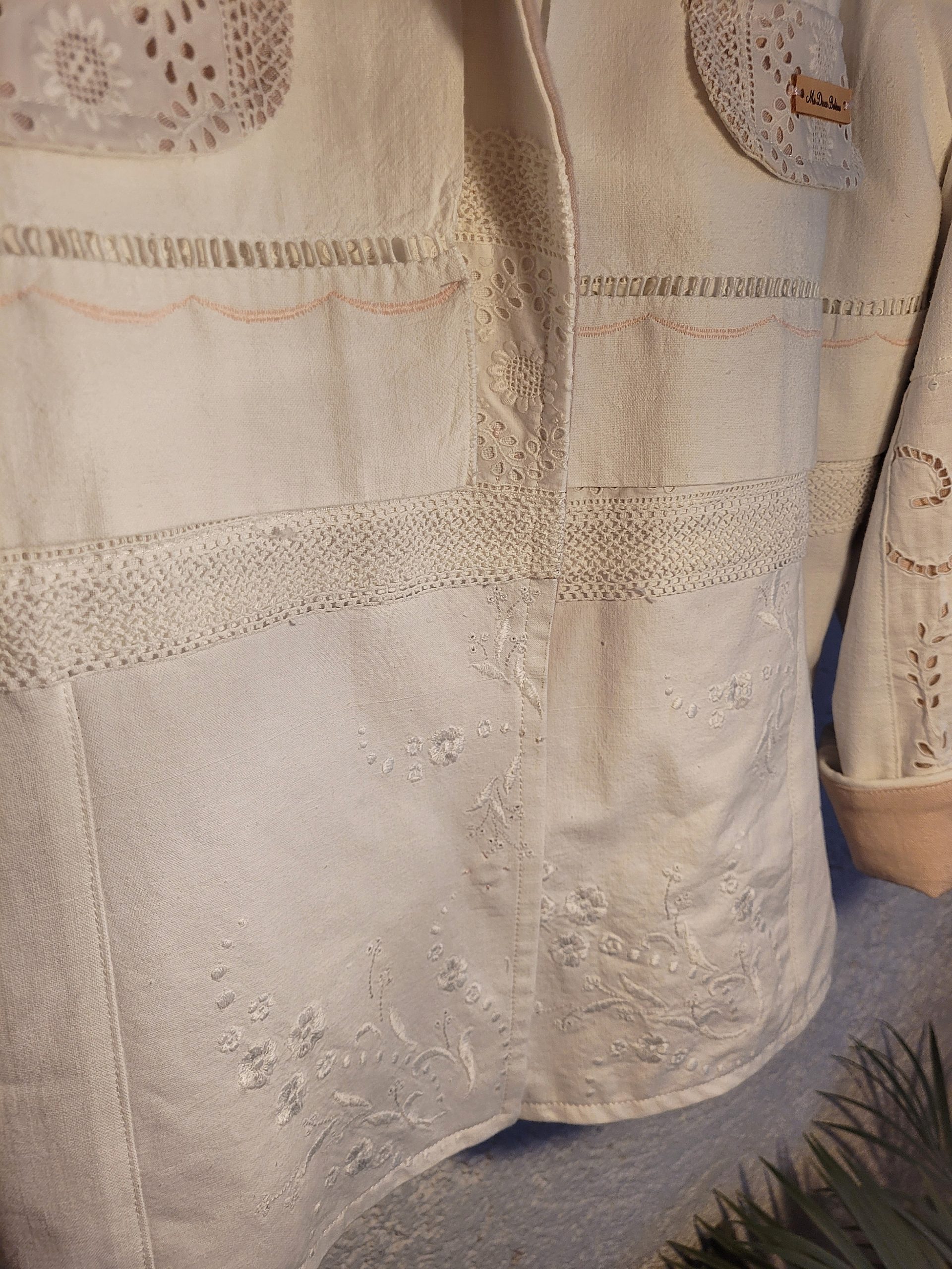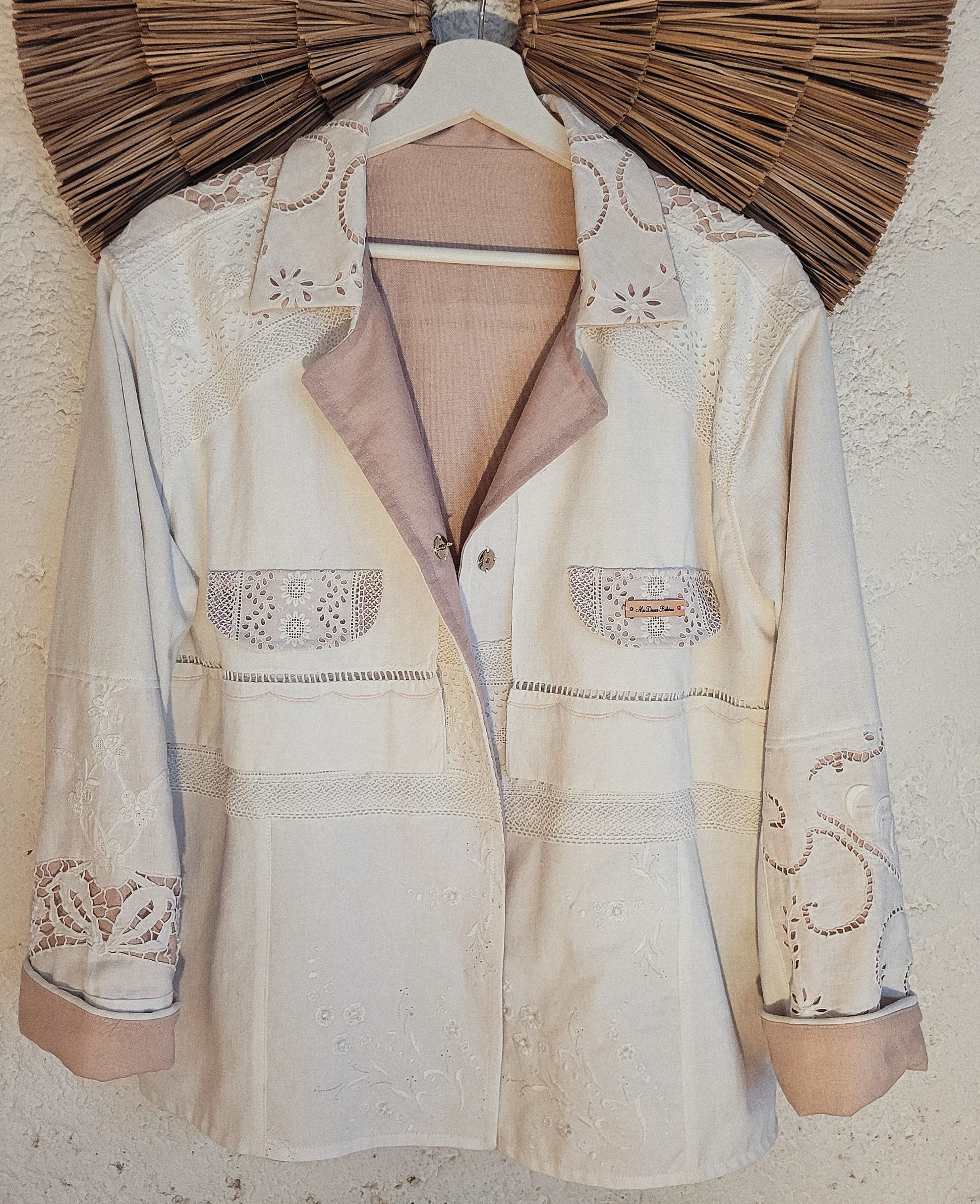 Veste entièrement réalisée dans de vrais draps anciens en lin et coton.